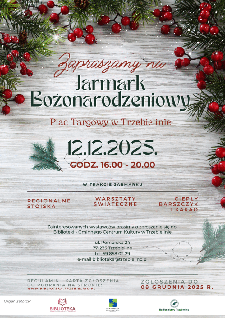 Jarmark Bożonarodzeniowy w Trzebielinie regulamin jarmarku bożonarodzeniowego 2025Pobierz karta zgłoszenia.docPobierz